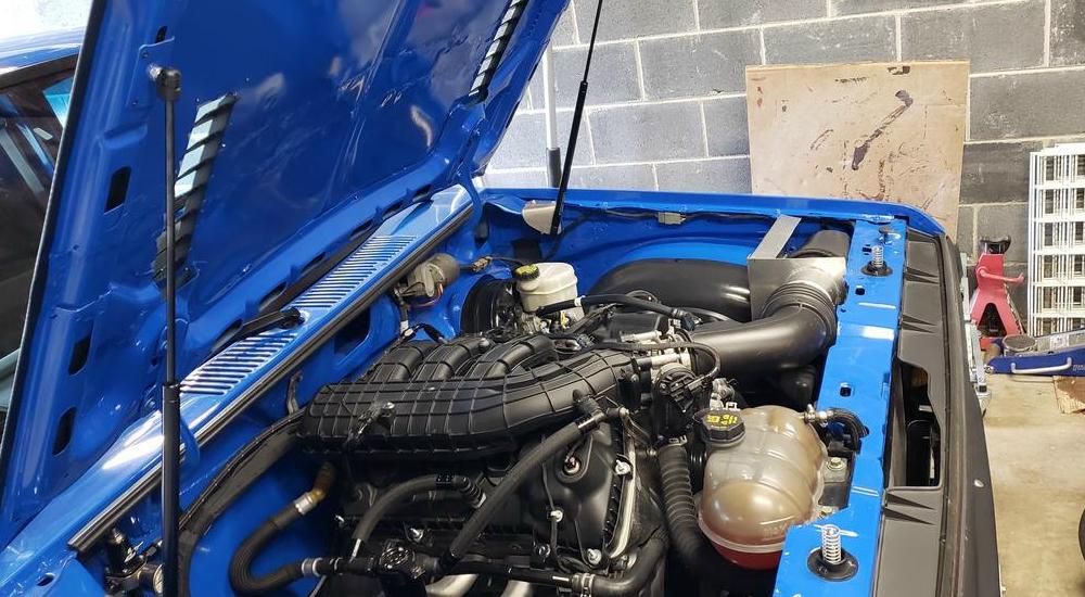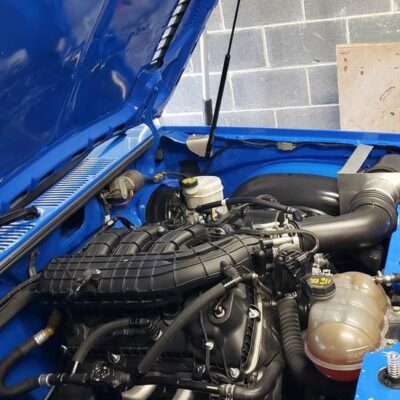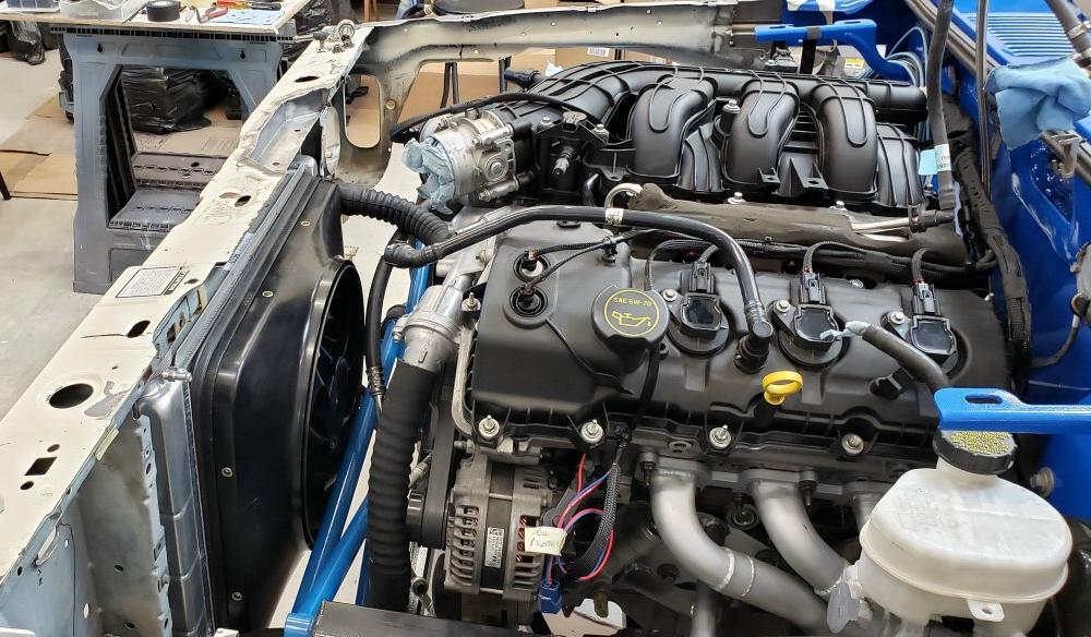 The engine is a Ford 3.7L Cyclone V6 making 300 horsepower and is backed by a Getrag / Ford MT82 6-speed manual transmission. The engine uses the stock Ford PCM and a Ron Francis harness.