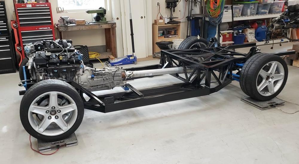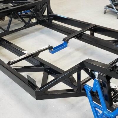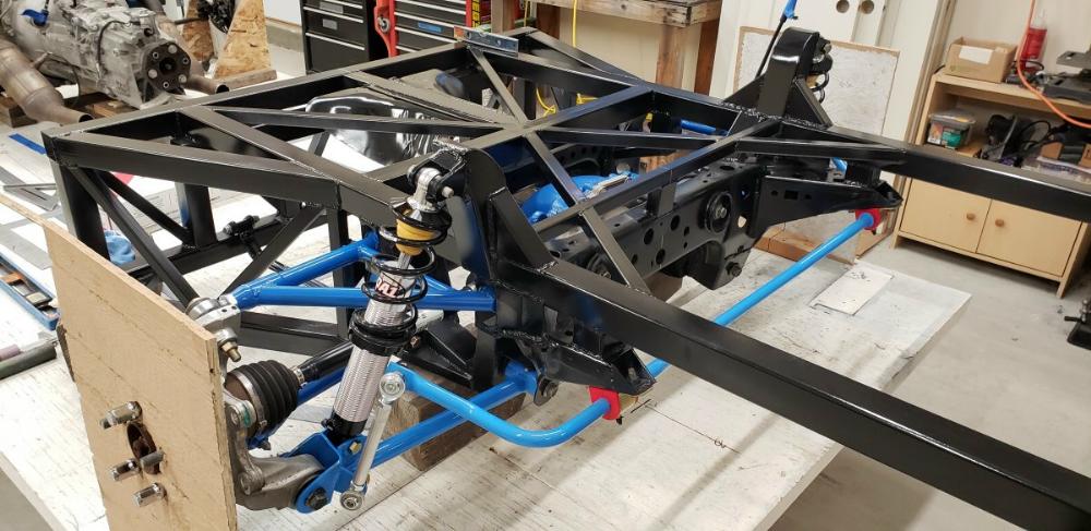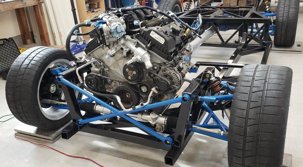 The Ranger uses a custom chassis with double A-arms in the front and rear. The chassis design was a combination of two space frame sections, and a center modified ladder frame. The chassis and A-arms were all designed and fabricated by Jim, and the front knuckles are from a Honda S2000.