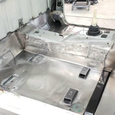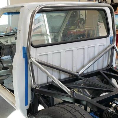 In addition to the custom chassis, the Ranger uses a custom roll bar, floor pans, and transmission tunnel. Jim even built custom fender flares to cover the tires.