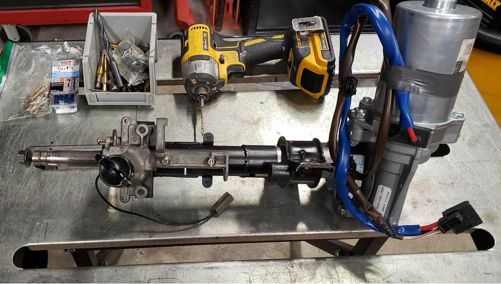 Jim Installed electric power steering from a 2014 Toyota Corolla and uses a Flaming River rack n pinion.