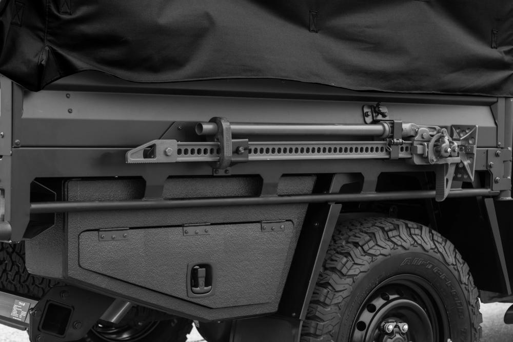 The Mach 2 added more features to this robust vehicle. Mach 2 included a light bar CAN (electrical signals) control, window grid protection, lamp grid protection, search light, armor, run flat tyres, a heavy duty SORV suspension, heavy duty seat covers, a 24V converter, high power alternator, front bull bar with airbag compliance, and cabin ROPS (roll over protection system).