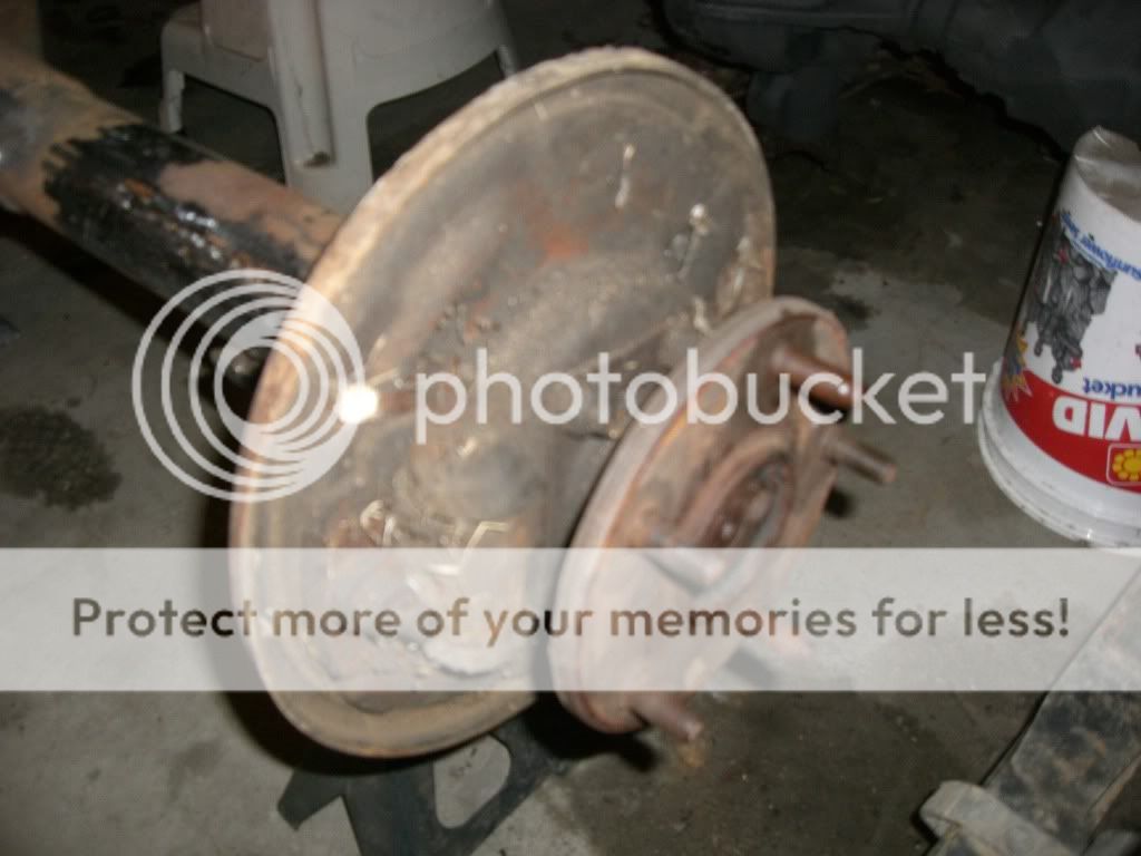 Here is the 9 inch I picked up. It was also completely rusted, had an open diff. and 3.00 gears. And I got what I paid for on this one. When I got it home I took the drums off to find out the brake internals had been gutted. The axle bearings were seized in the housing so I spent hours yanking, cursing, and hammering to get them out. Then I pulled the third member to find about half water and half gear oil coming out. After that I noticed that the housing was cracked next to the pinion support. At this point I just wanted to through it in the trash, but I new that I had searched for about 3 weeks just to find this one. Then the grinding began.....