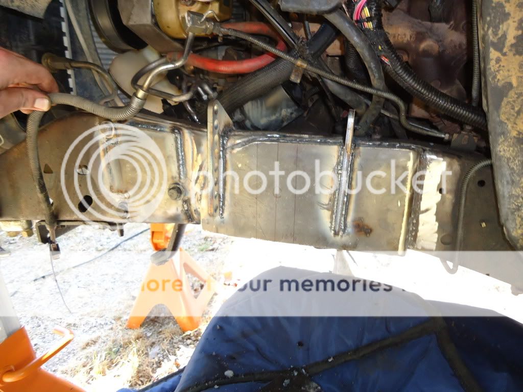 Next was mounting the track bar bracket. I also added a 3/8" x 1 1/2" steel bar from the engine cross member to the top mounting hole on the bracket for extra support.
