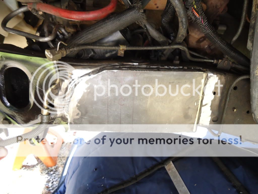 Now, the drivers side of the frame is a completely different story. I had to find a solution for creating a flat mounting surface around the power steering pump buldge. After a couple hours of thought I made a card board template, drew it in Autocad and cut it out at school on the cnc plasma table.