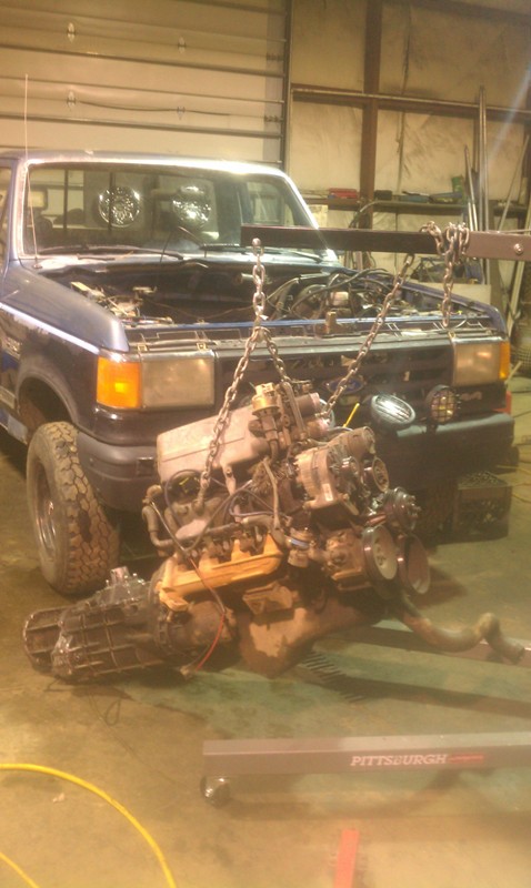 I did just buy an 88 f150 for a motor, trany(m5OD-r2) and tcase, doner. Headed back up during spring break to pull the motors and do a reseal/upper rebuild on the motor. Transmission needs some work too I am just hoping it is the shift tower and not the internals of the actually trany. Will then also get the rear 4-link built so I can get her back on its own feet. Decided since she blew up and didn't need to drive it back home that I would take the time and just 4-link it instead of doing leafs and then 4 linking at a later time.
