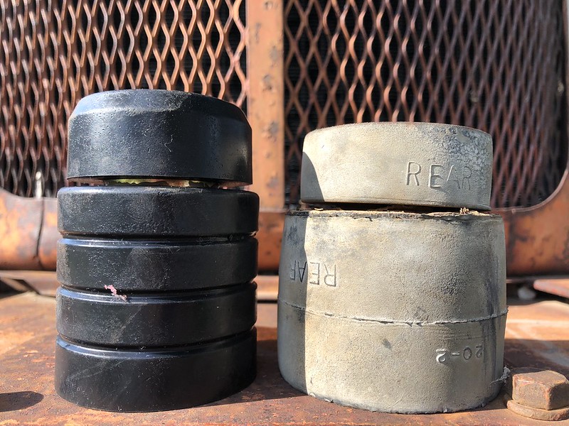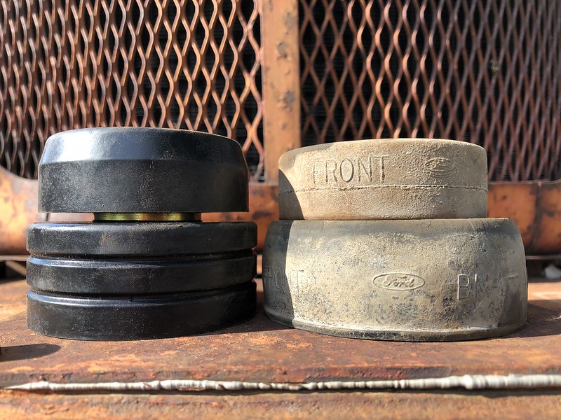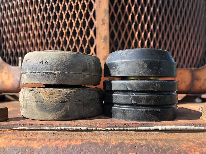 I decided that before I do a floor pan I probably ought to replace the cab mount bushings to get everything sitting as square as I can.