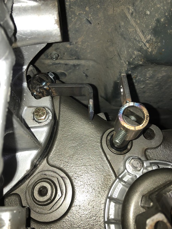 Overbored the bottom hole and welded a nut into it for a shorter bolt to screw into. If I had it to do again I would have used thicker tube and just tapped threads into it. Also bent and welded the piece onto the RWD rail tube.