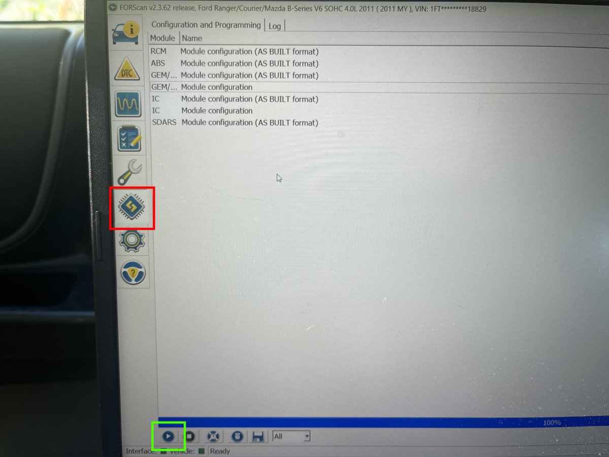 Once Forscan gets online with your truck, it may take a minute as it goes through and checks communication with all the modules, you can go to the communication and programming tab (Highlighted in Red). Here you'll be able to see all the modules that Forscan is communicating with.