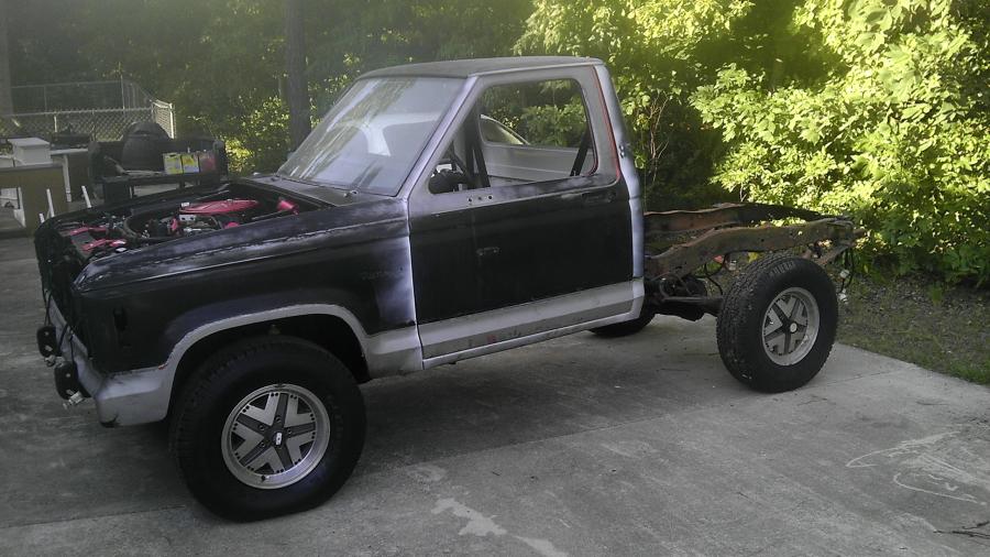 As for the rest of the body I was thinking either all black metallic w/ webbing (again similar to the steering wheel, but I'm afraid it will be too much look like crap); and then I was thinking two-tone red metallic over black metallic plain (following the horizontal line along fender, door, and bed), or that same design but w/ white webbing on the black; or just paint it all red metallic. Again, the hood design is definite.