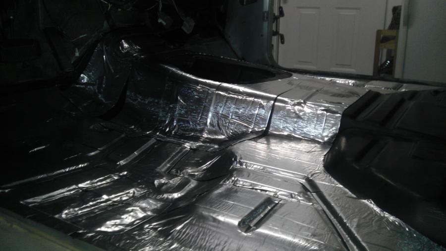 the silver coating is, funny enough, thin attic insulation I bought from Home Depot...hopefully did my homework well and it should withstand underhood temps no prob (I hope). It also holds some sound-deadening properties which is why I lined the cabin floor with it. Maybe not as effective as the pro stuff, but certainly a much, much cheaper alternative.
