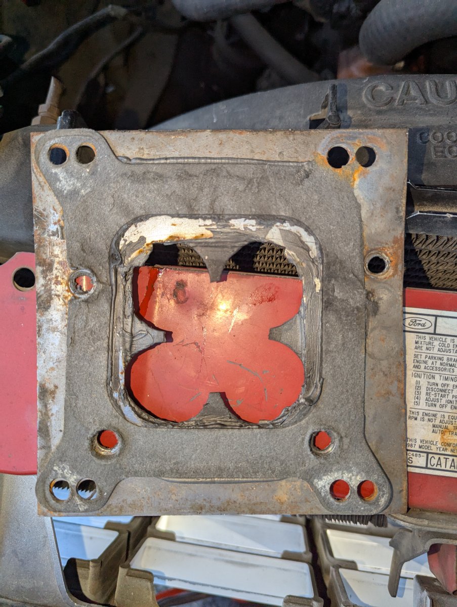 Hi all, first time Ranger owner. I picked up a 1987 2WD/5speed Ranger with EFI 2.3L that is halfway converted to carburetor. There is an intake manifold present, some kind of homemade carb adapter, as well as the right kind of fuel pump, and it seems the spark has been taken care of as well. According to the previous owner, a 4bbl carb "was too big and bogged it down".