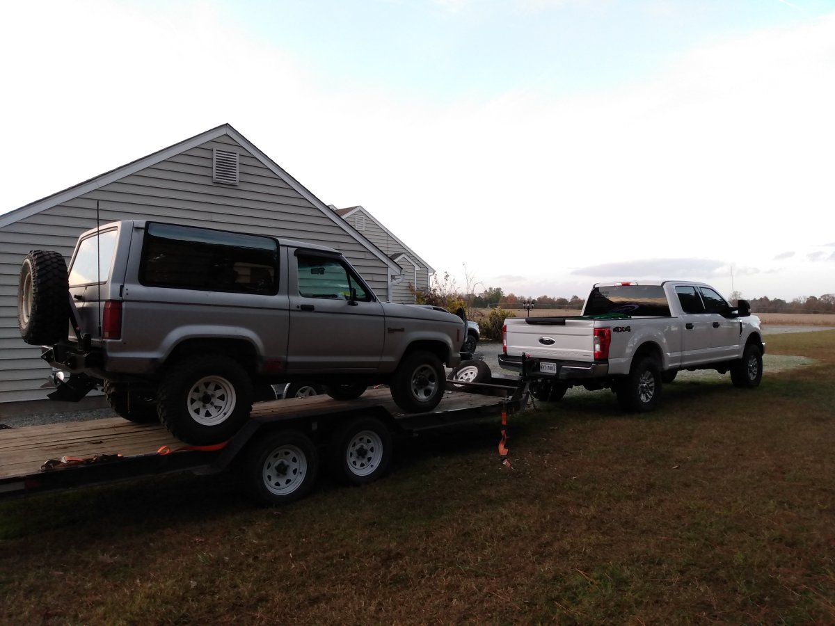 Well another night of low/limited success. Driveshaft installed fine seems good. Like an idiot I tried to install pinion angle shims and noted they wouldn't fit over the leaf spring pins. Shortly after drilling them out (9/16") I realized I should have pulled the spring pack back apart and bolted them in... Hind sight. Defeated there I reassemble the rear and went to battle with front brake lines(That James Duff does not include with their $2500+ lift "system"). So I measured and researched and determined 2wd lines are 2"+ longer. Should work PERFECT. Well guess what, they don't. Attempted to modify them by grinding the flat surface on the banjo bolt block but then they wouldn't orient correctly. Wrap it up to another loss of $. This f_$&/#g bronco i i has kicked my ass every direction I turn. #defeated...