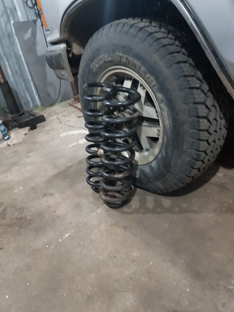 So I got some free springs they are a bit big but thought I could just cut them down if I didnt like the height. Well I went to jack up my truck to discover the ball joints are shot on the bottom and the wheel bearings are even worse.