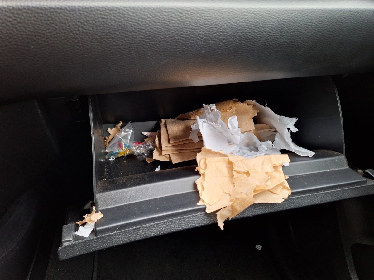 I opened it up today and found shredded paper. It would appear that a mouse got into my glovebox. I think a mouse only needs an apening of about a dime to squeeze through, but what I want to know is where in the hell there's a dime size opening going into the cab of a 2021 Ranger??