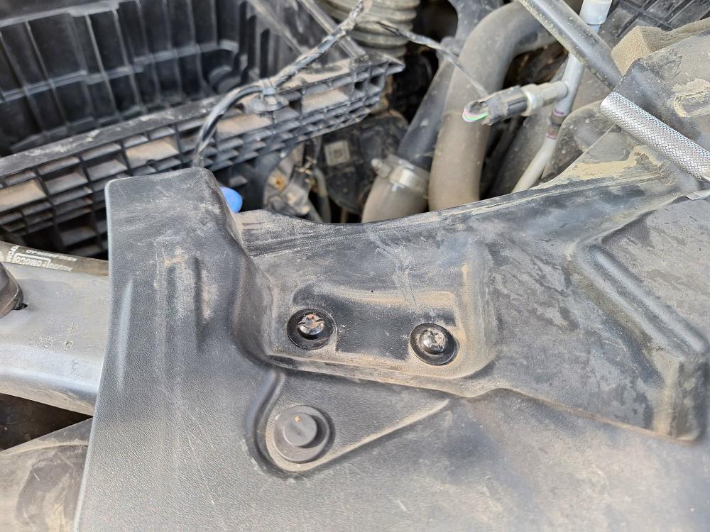 The air deflector is held in place by (4) 7mm bolts. (2) on the left and (2) on the right.