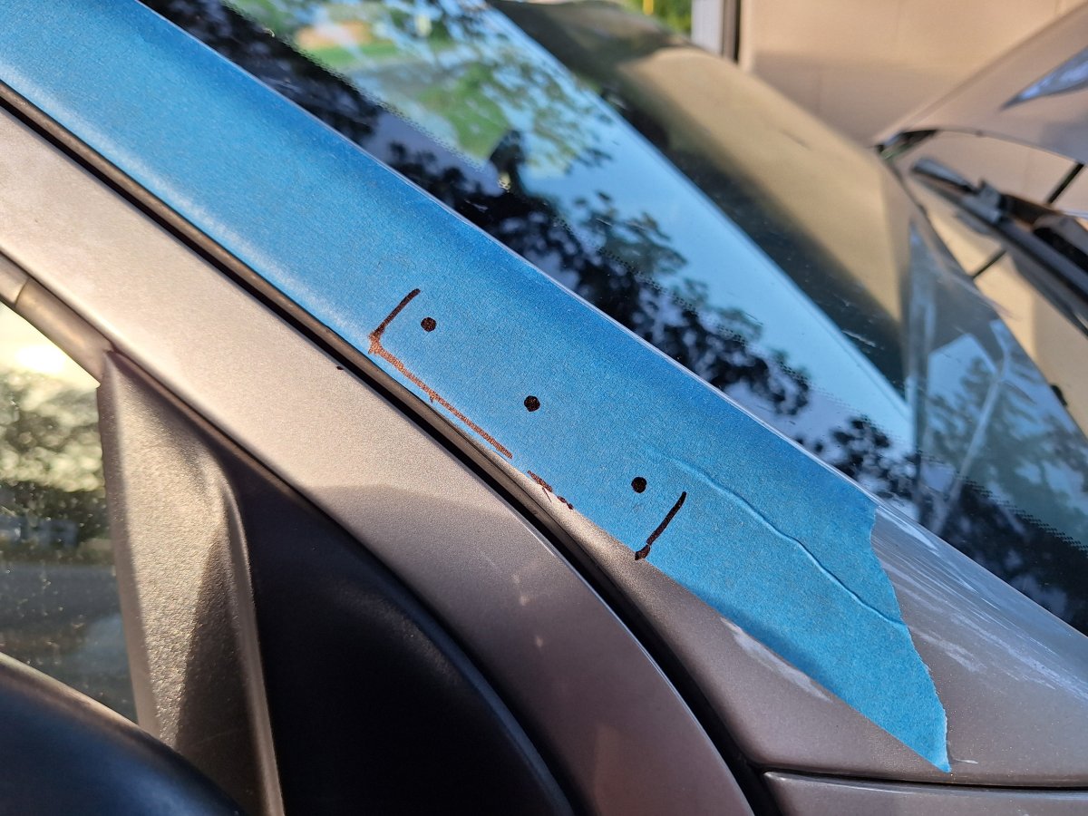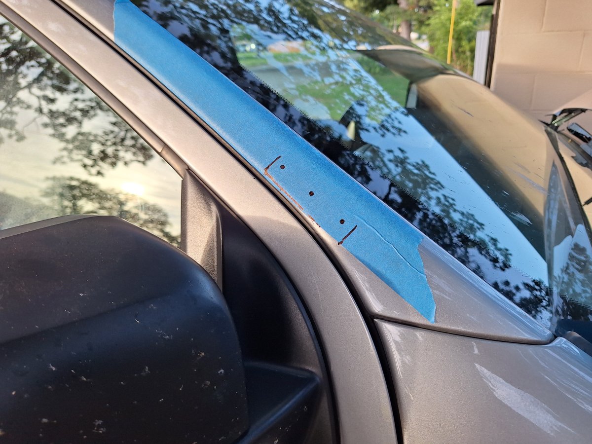 To remove my grill, I used a screwdriver to create a gap between the top of the black plastic grill tab and the bumper cover, and then slid a toothpick in the gap to keep the tab from locking back in place. You can see the toothpicks in the photo below.