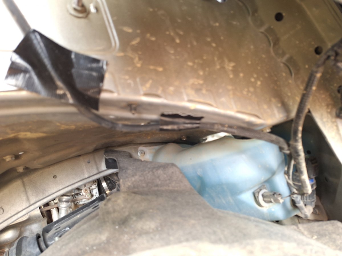 Begin by removing the radiator support access cover (the plastic cover between the grill and the radiator). The cover is held in place by (5) plastic push pin clips and (2) T30 Torx screws that hold the air intake in place.
