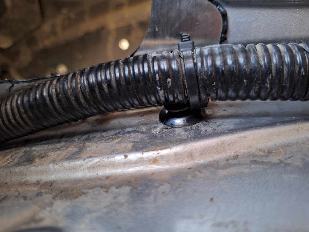 Cover the intake hose with a plastic bag to prevent anything from falling into the intake.