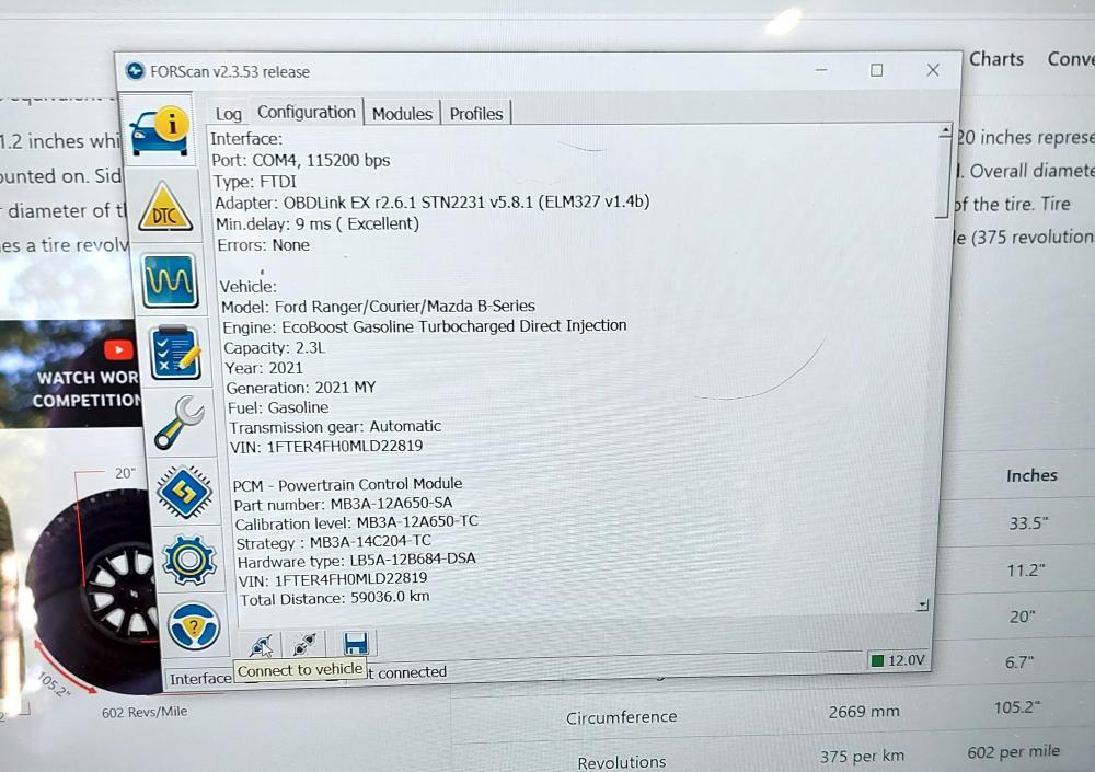 Now you just plug it in to your computers USB port and the OBD port on your Ranger.