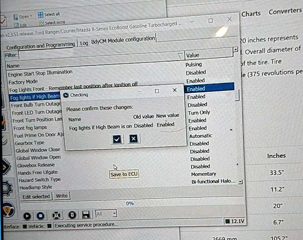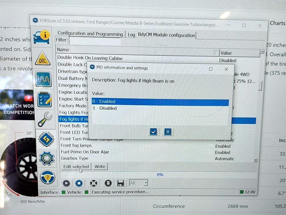 This time you'll scroll down and look for 'Fog lights if High Beam is on'. The factory default is Disabled but you'll see where I have already enabled it in the pic below.