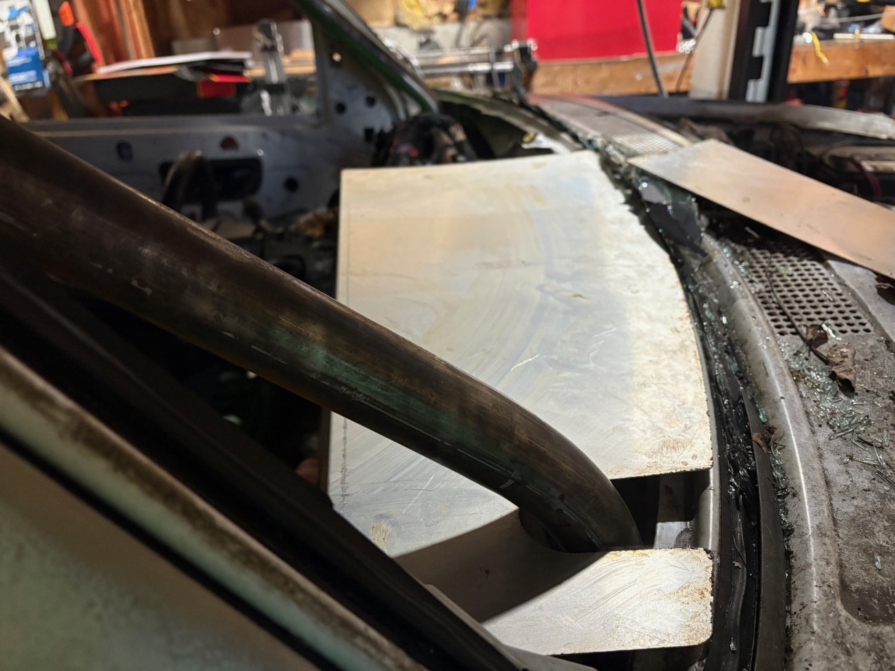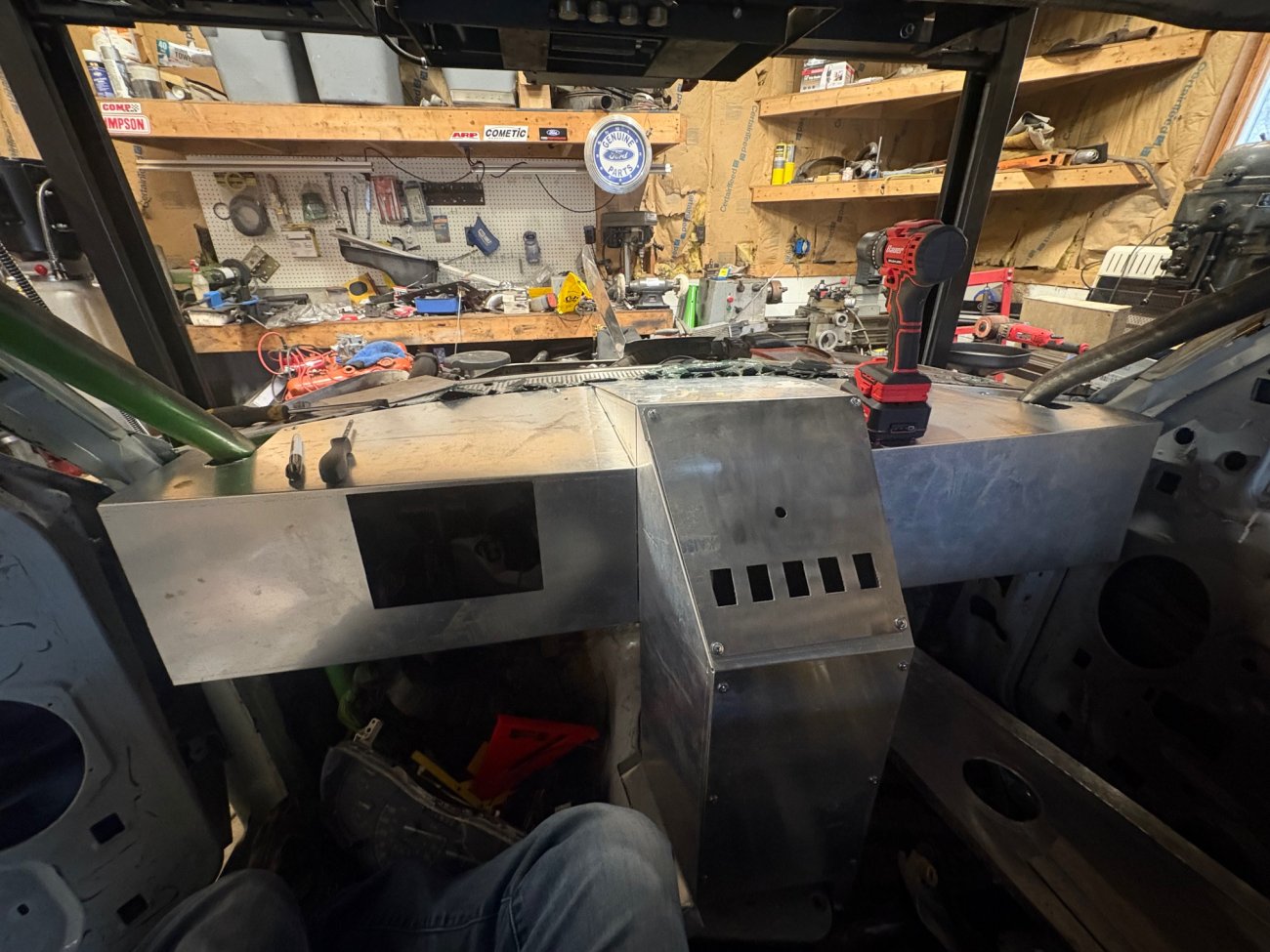 Not a lot of time out there this winter, but have made some progress on the dash/interior thought I’d update. The overhead bars in the center and over the drivers head have been added, as well as horizontal bracing on the bed bars.
