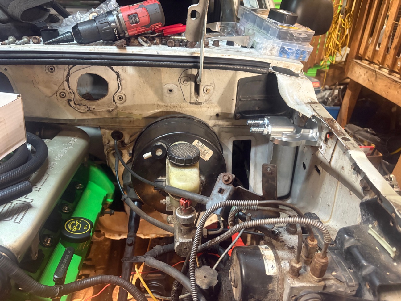 thank you for the compliments. The engine came from a wrecked SHO my buddy had at his shop 10-15 years ago. He pulled the engine before junking what was left of the car. The powdercoating is something I did myself. Several years ago I bought one of the cheapy powdercoating guns from harbor freight and a free electric oven that my nephew was throwing away when he remodeled his kitchen. I’ve had other things powdercoated in the past by professionals and had good experiences, but it was pricey. DIY has produced results that are between 90-100% as good and it obviously costs far less. I think 1lb of the neon green powder cost me $25 with shipping.