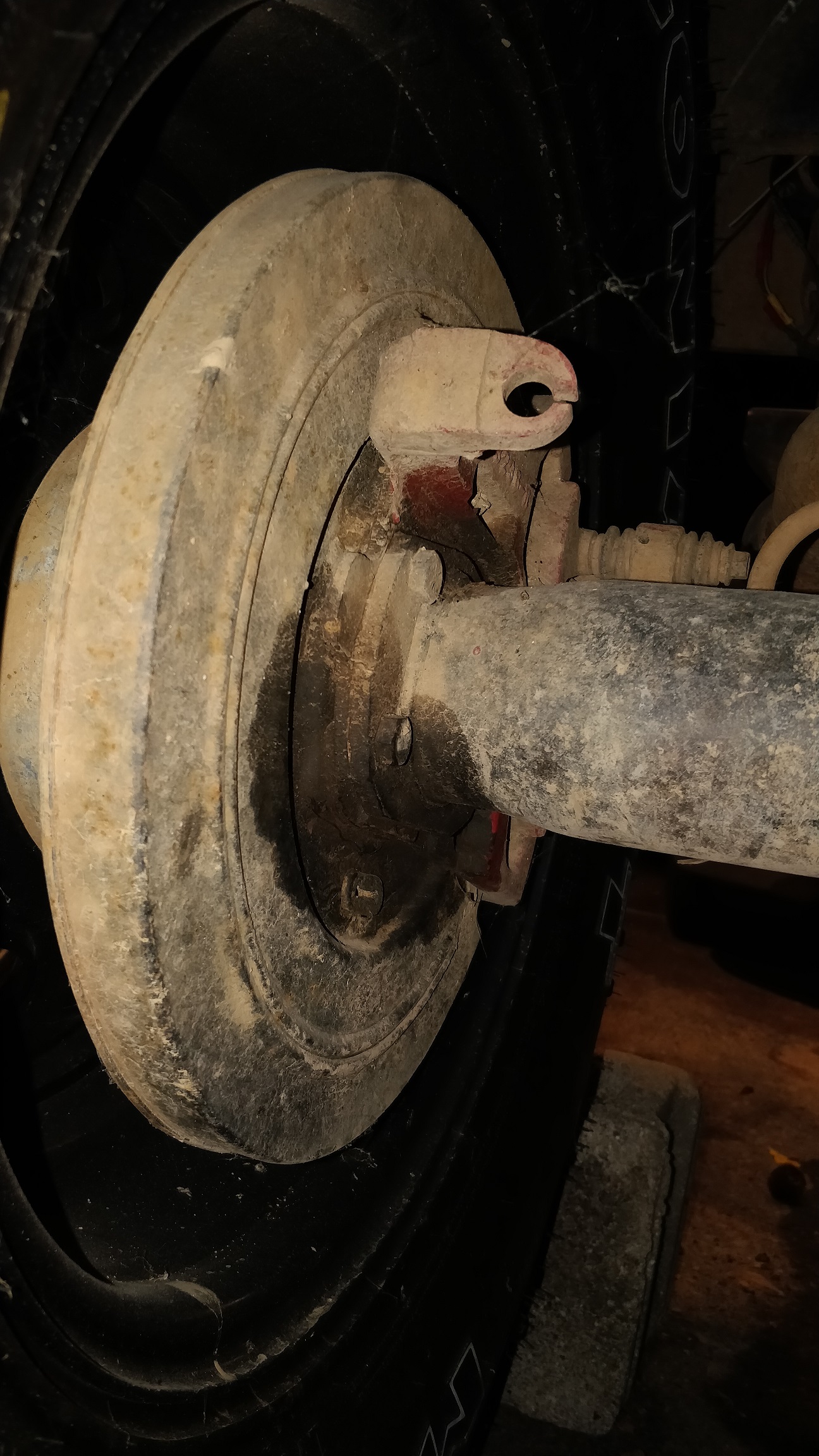 The axle has rotors drilled for this and I believe it has factory calipers, but I am a newb and am still learning so I may be wrong. The parking brake cable is not connected, and I see a spot for the tabs on the back of the brake, but the tabs are absent.