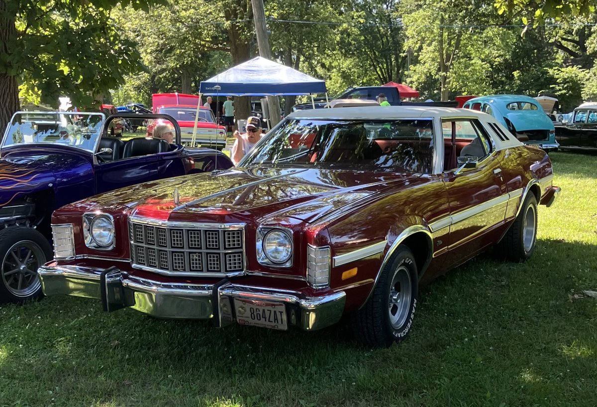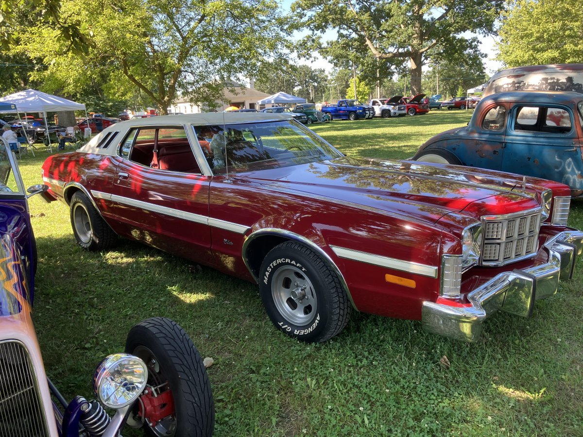 I hated those cars, they were Torino Elites, basically a gaudied up 2 door with an extended nose. The used standard Torino hood springs even though the hood was longer, the hoods would fall back down a foot or so when I let go. They cornered like a boat and, as big as they were, my head brushed on the headliner if I sat in the back, I'm only 5' 10".Saw this at a car show today, not certain of the year, very few cars had tags in them. Says “elite” but sure looks like a ltd2/torino.
