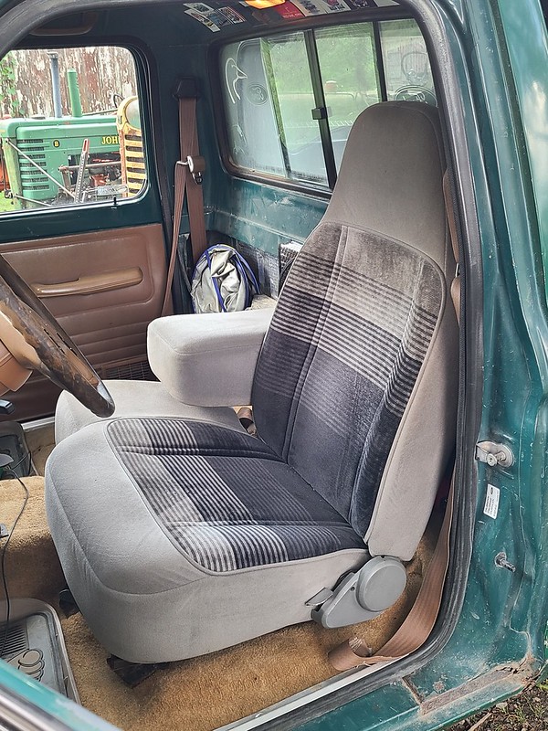 Seriously, those are some nice seats. Kind of a bummer to have to recover them, but the green over tan color scheme is a good one, and it really makes your truck stand out.