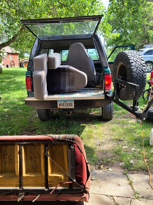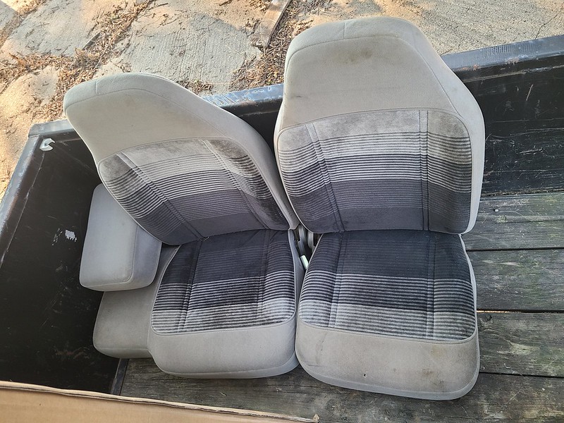 He decided he wanted to put bucket seats in it so he offered me the split bench as he had no plans for it, so I says sure. The bench seat kinda sucks for long distance driving.