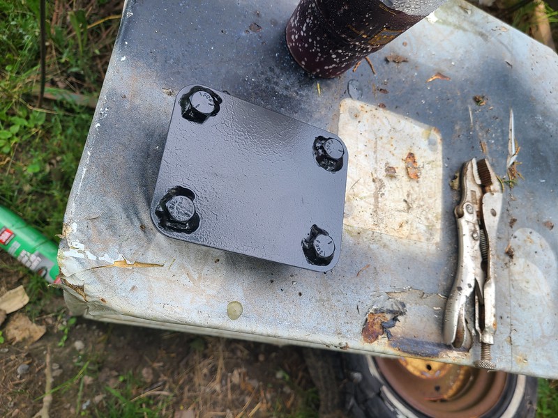 Dropped the fuel tank, drilled four holes and installed the plate: