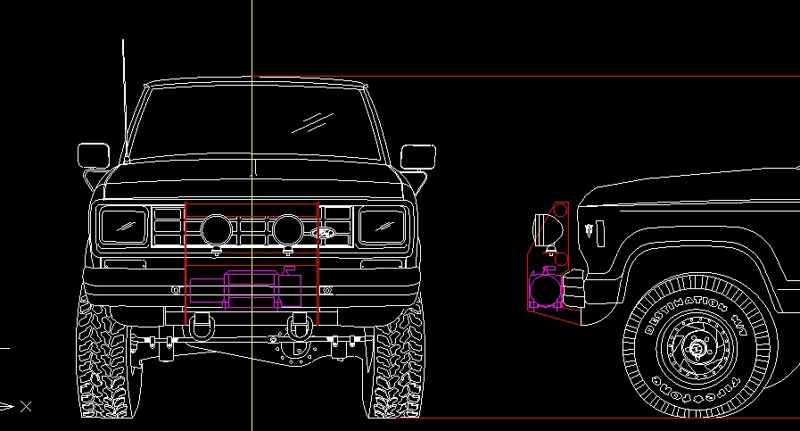 And I started doodling my grille guard last weekend. I have the factory headlight guards... but my current grille guard side plates are outside of the frame. The factory grille guard mounts to the inside so they would stick out like 3" too far on both sides. I pretty much have the top drawn up to be the correct width to match the headlight guard hoops. I need to rough in the receiver/winch plate/winch and then I can work on the contour of the grille guard side plates.