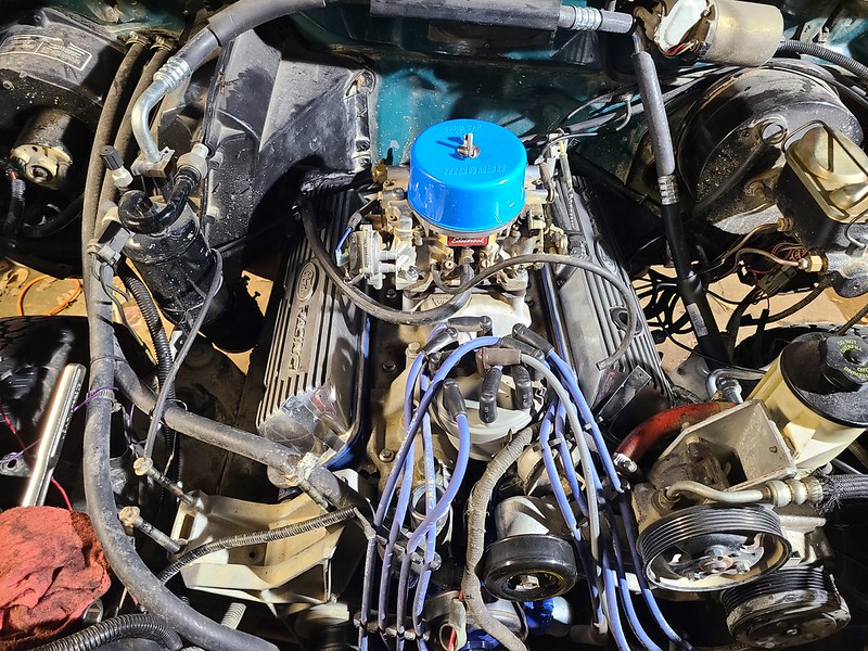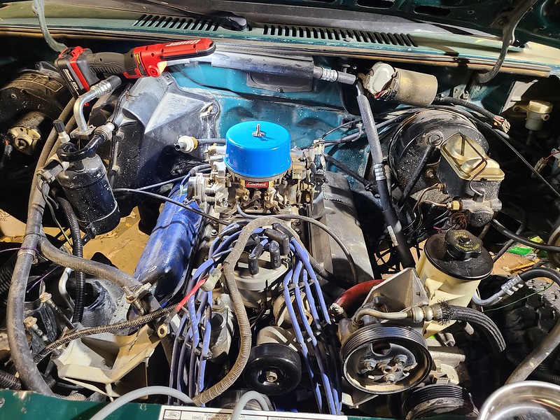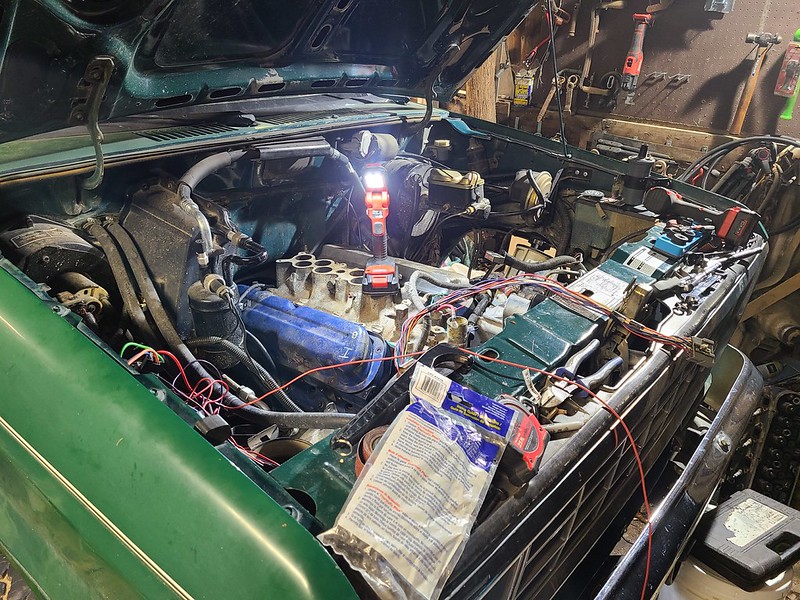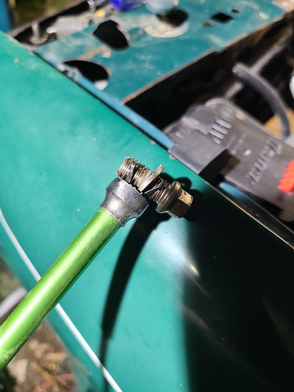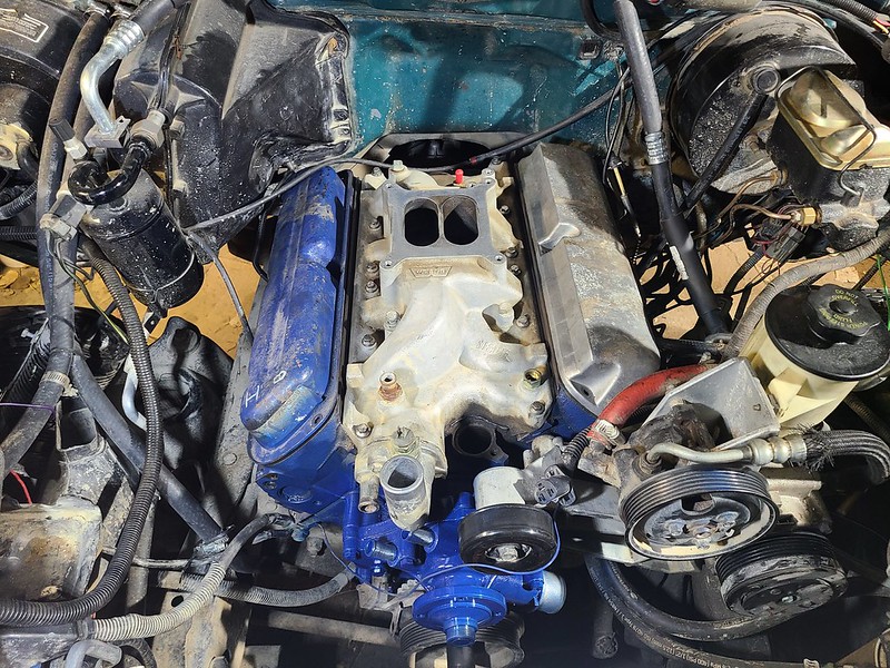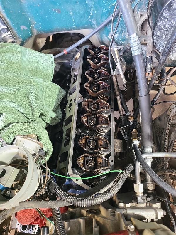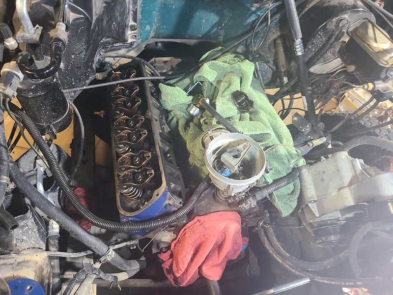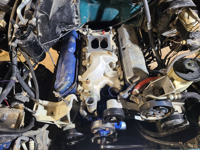Of course one bolt fought. I tried working it back and forth, I tried putting penetraiting oil in every seam I could to help it... it didn't make it. Looks like it broke off flush with the block. So now I gotta pull the timing cover which is spectacular. Hopefully I don't screw up the oil pan gasket too much so I don't have to redo that too.