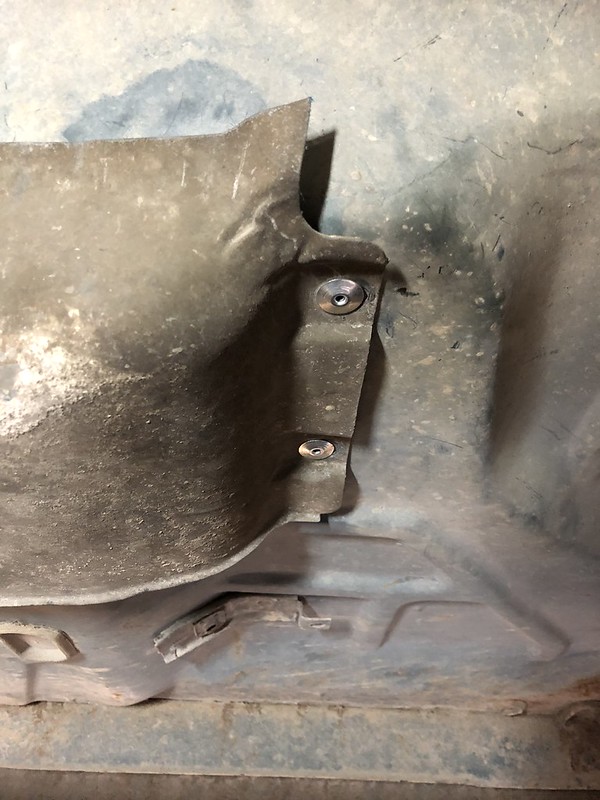 Ok, what else? Heat shield needs dealt with, so it is now tightly reriveted in place. I used large head pop rivets originally intended for holding poly skidplates on the bottom of combine heads.