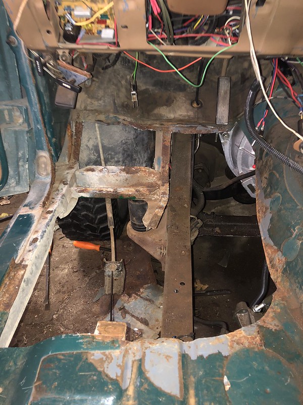 Fred didn’t have that transfer case to bang his legs on while “driving”