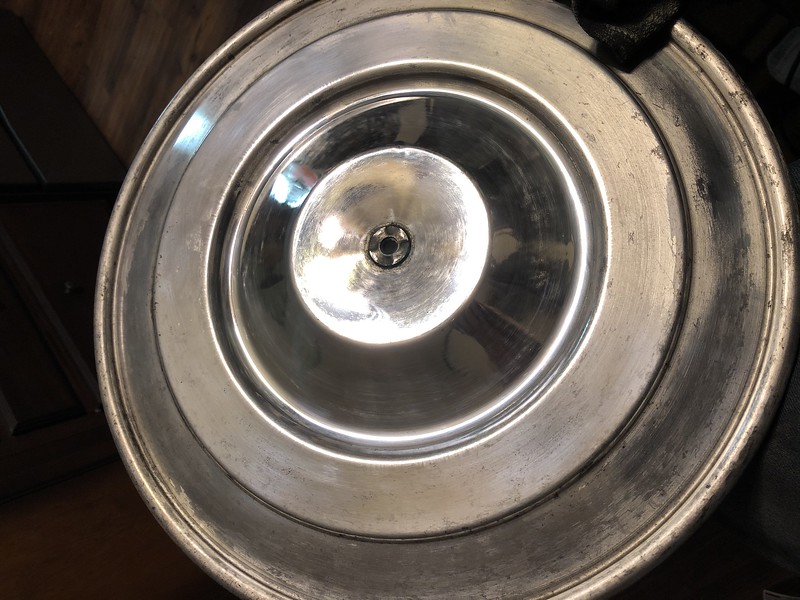 If I could find a lid ready to go I would have, the regular Mustang ones are stupid priced. So I am polishing out 30 years worth of stains and oxidation so I can chuck it in a drill and redo the original brushed finish.