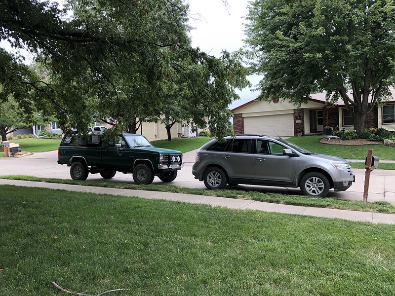 It was kind of funny, I stopped to get gas on my way out of town this morning. I had filled it and left my truck at the pump (only one there) and went in to grab a pop. A lifted Rubicon Jk parked at the pump beside mine facing the same direction. Illionois plates, he had a offroad teardrop camper, the interlocking gas cans, maxtrax, mounted hi-lift jack, bunch of stickers... like a real deal overlander or as close to it as you get in Iowa. I was gawking at the Jeep as I waited in line inside and while the guy filled his Jeep I noticed he was continually gawking at my Ranger. We met outside the door not saying anything and I went over and talked to my wife a bit at her car and handed off the sweet tea she ordered. He walked back out still gawking at my truck. I wish I was out there when he was filling, i don't know what was so interesting about a 34yo truck with a small lift, mud tires and a topper because to most people that is what it is. He didn't hear it run, a laymen wouldn't know the axles have been swapped and not really a biggie wow thing if you do know. No big lift screaming for attention. Bed full of gear in totes is concealed by a topper. As someone that had every whiz-bang offroad thing there is the more I think about it the more I wonder what was so interesting.