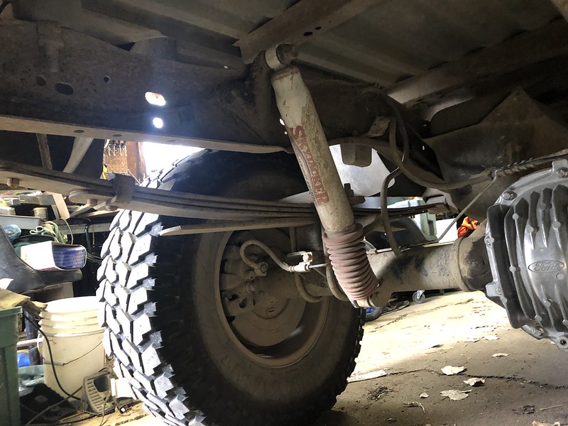 So I decided to put the Explorer springs back in and ditch the factory lift blocks to help with spring wrap. It is really weird, I have never loaded the truck much at all with these springs in it. They were out of a 2wd 2009 Supercab. Going back to the Explorer springs was going to be a quickie thing but I see the bushings don't look too hot... so I need to replace those too. I did start the teardown today since it was nice though.