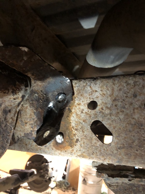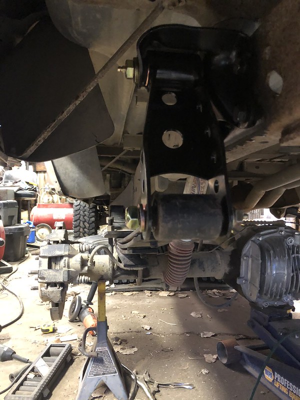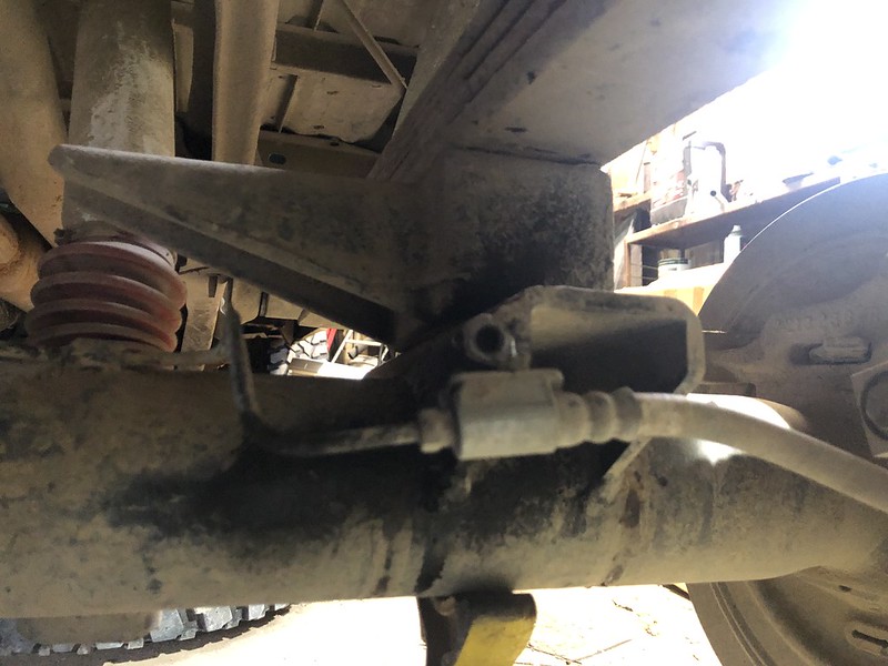 - I will also need to relocate the brake line mounts (aka weld a 1/4" nut a little lower on the spring perch so it doesn't hit the spring in its new position)