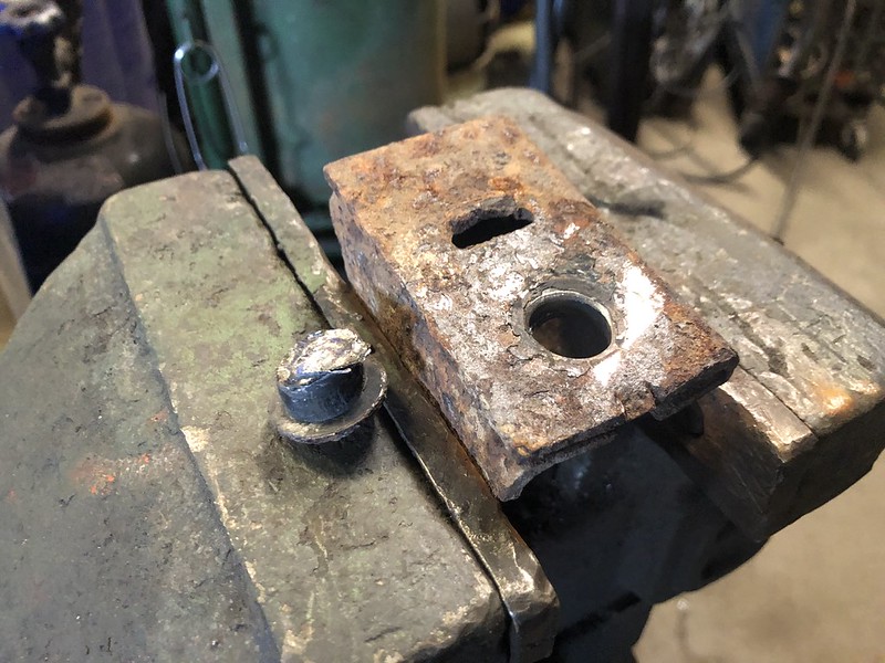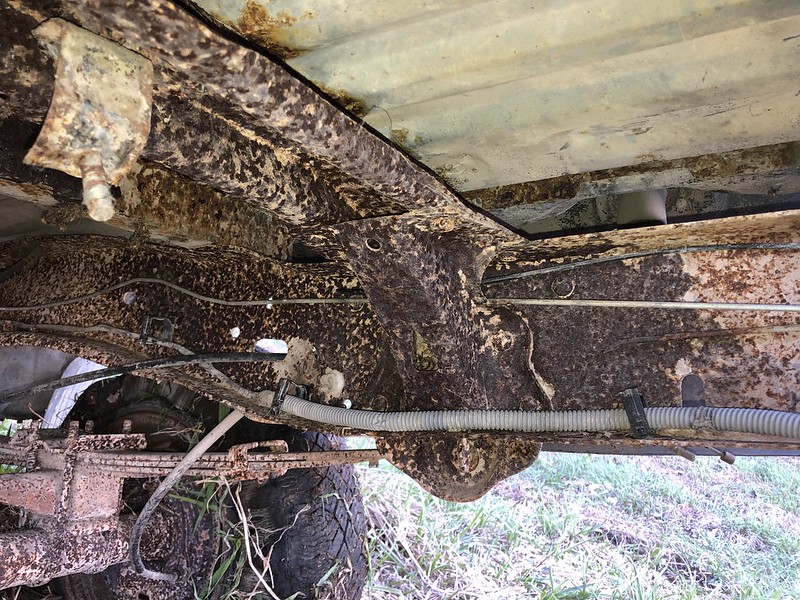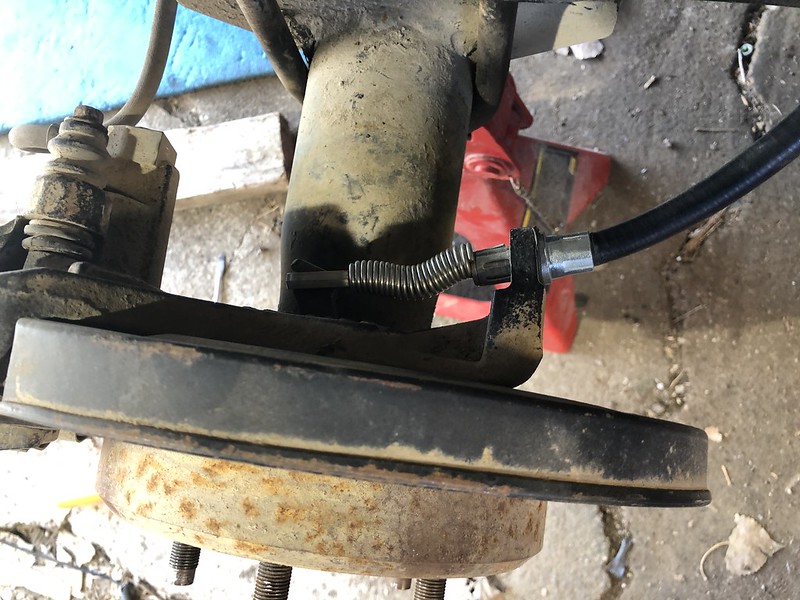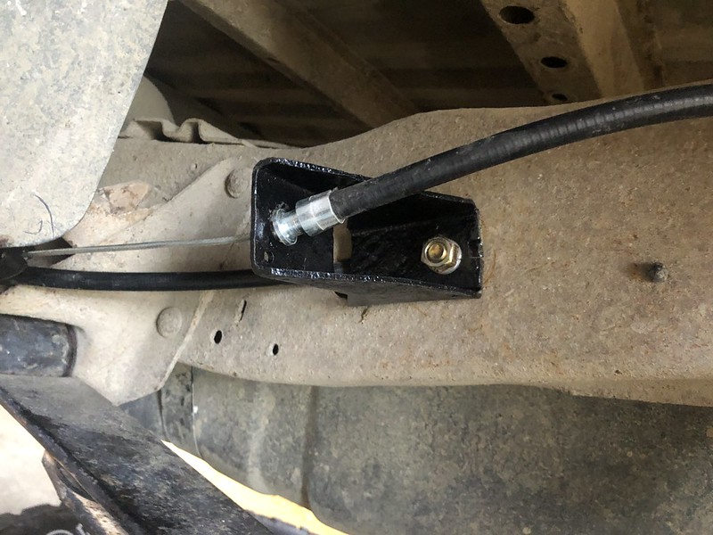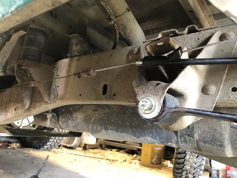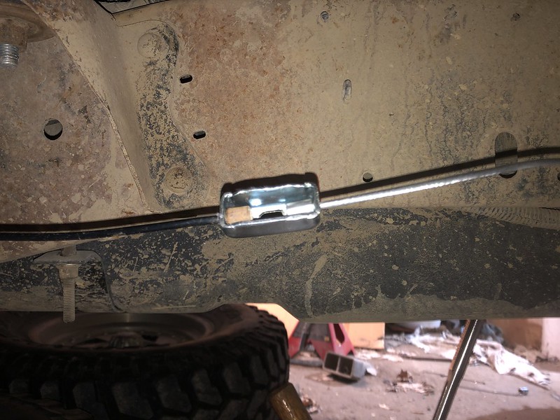 I talked to dad, he suggested dropping the tank and torching the bolt off... so I will do that when I upgrade the fuel pump. In the mean time I have three cables laying on the garage floor. So I start looking for alternatives. Then I notice the front cable bracket behind the center cab mount looks identical.