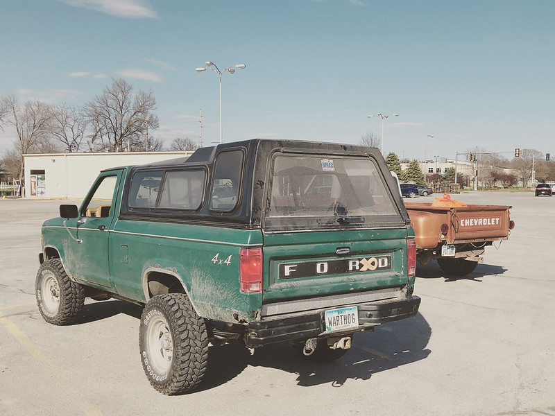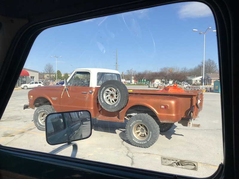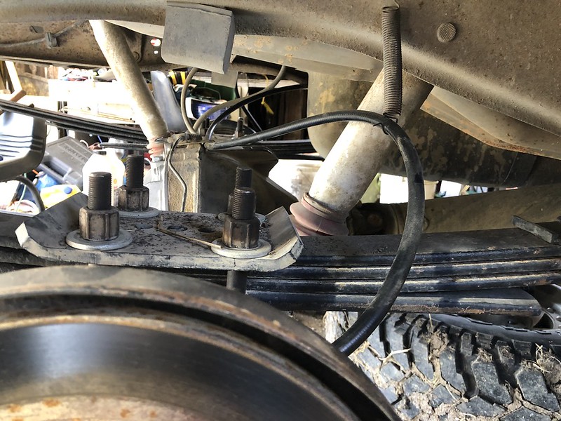 Went to town for an ice cream run (wifey was making an apple pie) and I took the backway... the crappiest county road I could find to simulate Illionois' craptacular highways to judge ride quality with the new rear suspension. It used to like to kick the rear out to the left on a bump, some say it is because of the staggered shocks, some say it is worn out shocks... in my case it was clearly something else. I suspect the frozen shackle. Anyway it rode like a dream and tracked straight over the bumps with the same old staggered shocks it has had for quite awhile now (but I don't have a ton of miles on them)