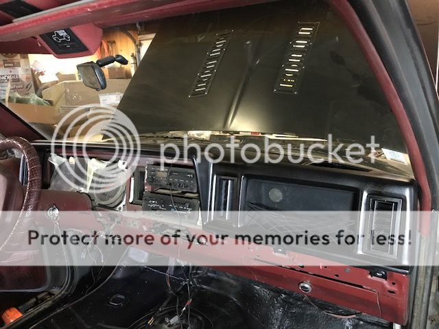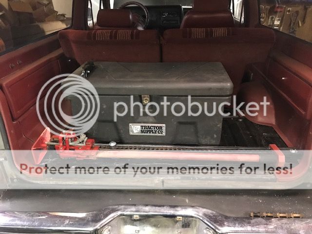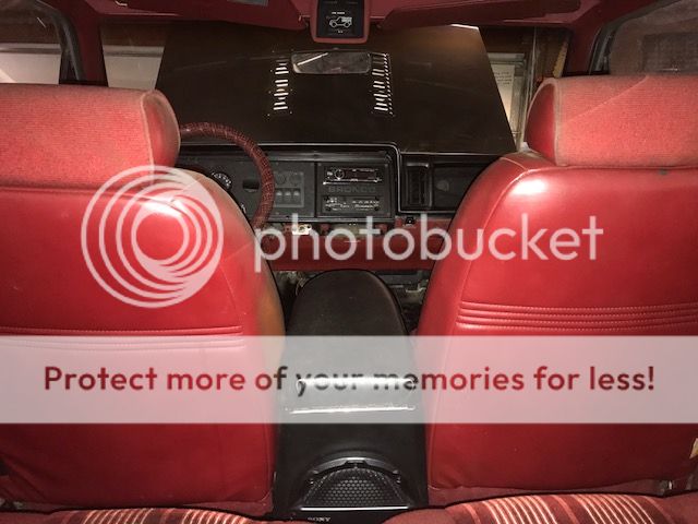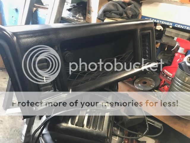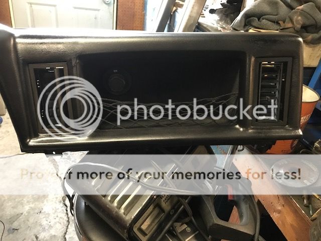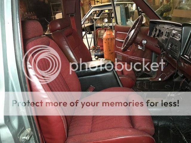 Ready to test fit seats now. I also pulled a mint black dash pad out of my parts truck in backyard and replaced the busted up red one. Then I removed the passenger side cubby and used some cargo netting to make that space actually useable.