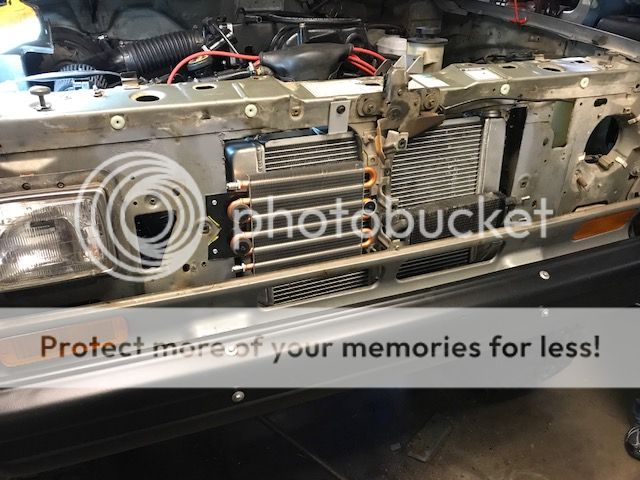 I now have the radiator mounted for good and the powersteering and trans coolers are on