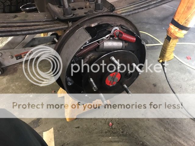 Had a good Sunday in the shop with a few buddies helping me out. We got everything reamed out and the Ruff Stuff 1 ton steering on and everything fits and clears good. Finally dug out the box of new rear brake parts Ive been sitting on for about a month and found out nothing fits! Turns out somebody had swapped out the 11" narrow drum brakes {1.75" shoes} for full size f150 11" drum brakes {2.25" shoes} so I had to run and exchange all my parts and thankfully everything was on the shelf.