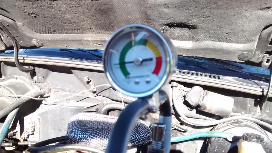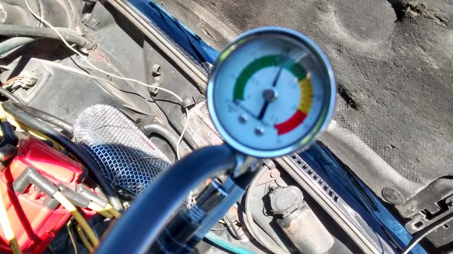 I finally got it to hold 13lbs of pressure and just to see what would happen i fired it up let it run with my trusty garden hose close by to spray the rad when it got too hot