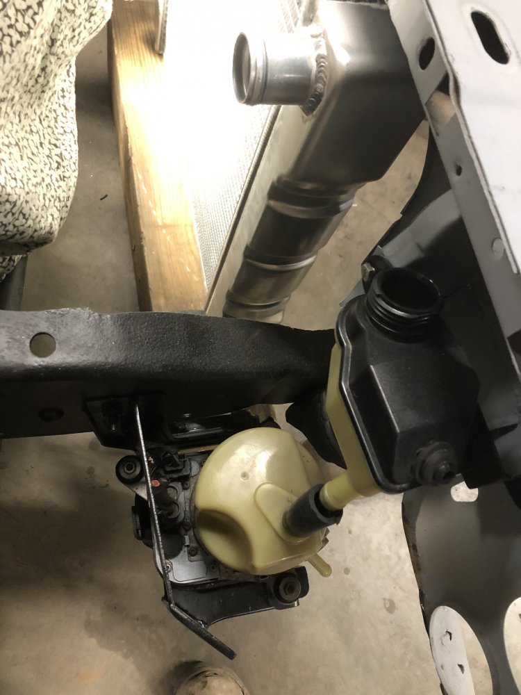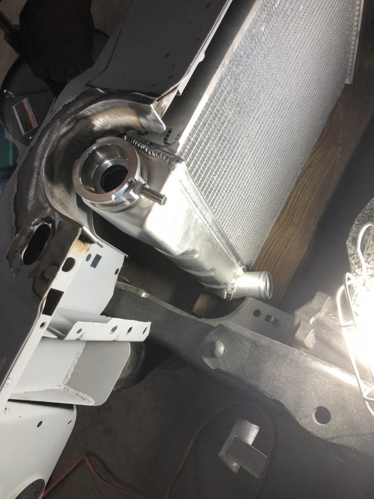 Working on mounting the radiator and the Volvo power steering unit tonight. Notched the top of the core support to push it forward. Looking for ideas from you guys on mounting it?