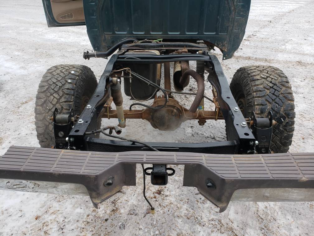 I still have to bleed the brake lines, reinstall the hitch/bumper, and install the bed with associated electrical hookups. I'll have to see where the springs settle out after they have been on there for a while, I may have to install a small block this winter when I put in the explorer axle.