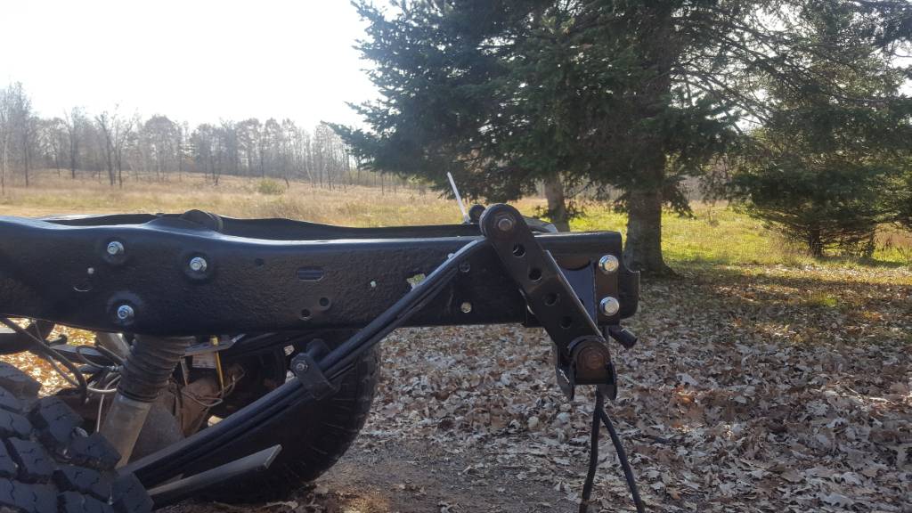 I also dropped the leaf springs down one hole on the shackle. It's still sitting too low for my liking, so I may have to put in a small block or use a shorter shackle. I will also have to get some longer shocks, I believe these shocks, for 0"-2" of lift, are limiting my travel.