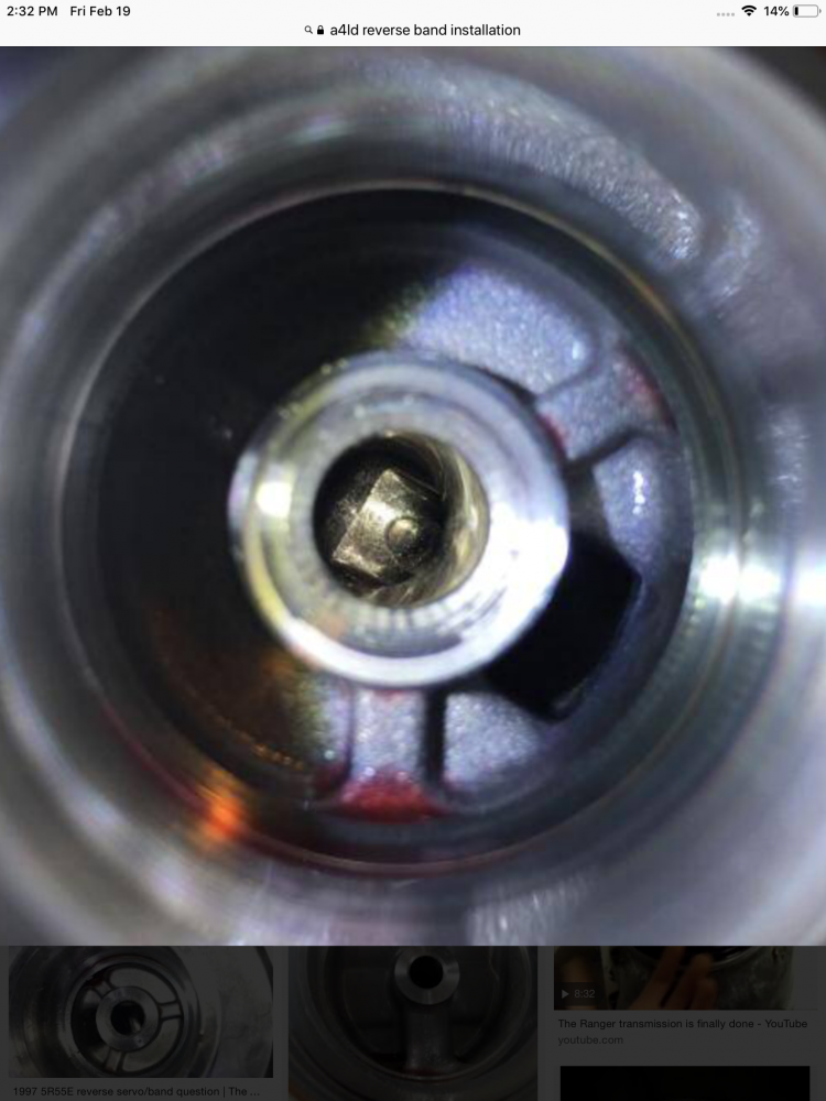 Hi Transman304, I respect your vast knowledge...Very easy to miss the tab on reverse band when installing servo. Band will rotate and move forward out of location when building transmission. Can be moved back into location while transmission is installed. Need to see the tab of the band where servo pin installs.