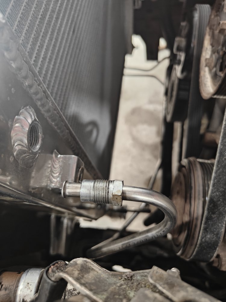 The stock radiators have plastic in the radiator construction, and like the thermostat housing, the plastic likes to crack and leak over time. Right now there's no problem.